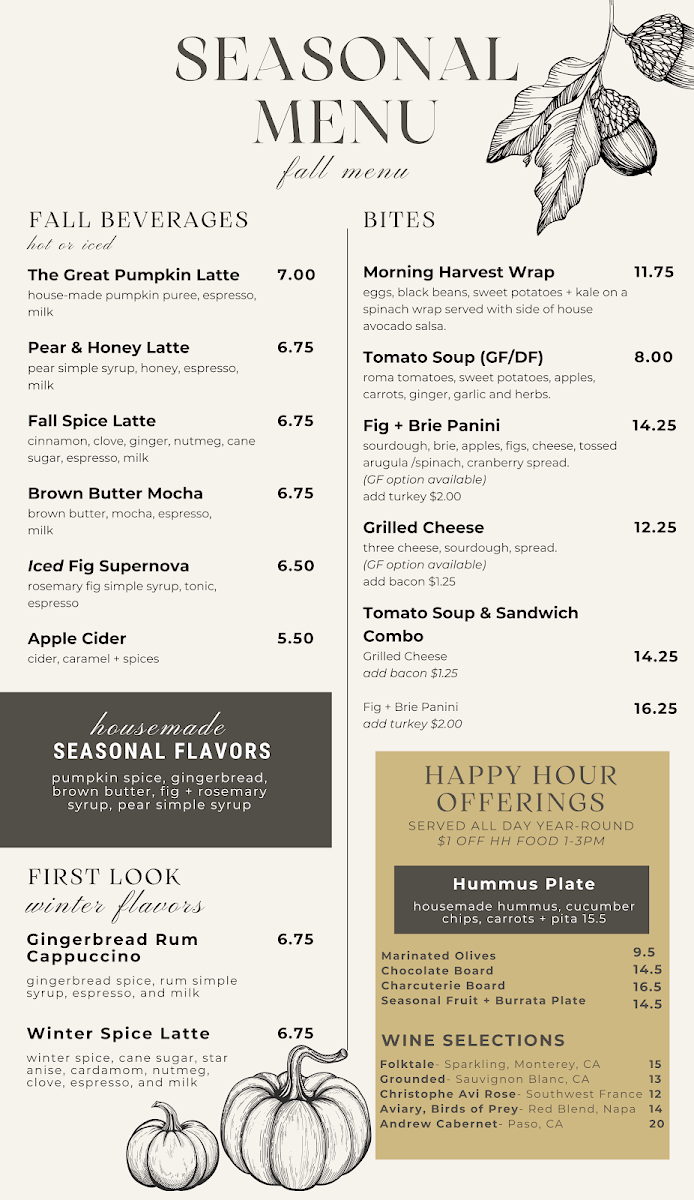 A cozy blend of espresso and milk with cinnamon, clove, ginger, nutmeg, and cane sugar.